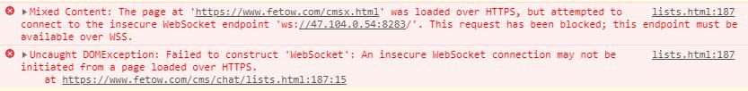 在你的网站布署了https后,如果你想使用websocket服务通信,你就会发现由于服务器端还是使用的http协议,而你浏览器端又使用的是https协议,这样就会造成浏览拒绝响应服务器。
