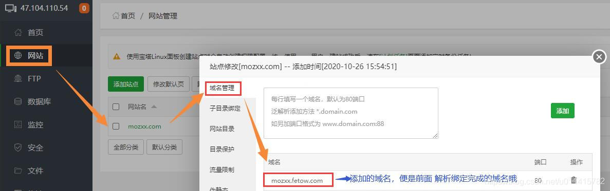 (图示为使用【宝塔管理系统】的界面,只是为了方便操作,根据手册上的介绍也可以实现,毕竟目的是一样的)