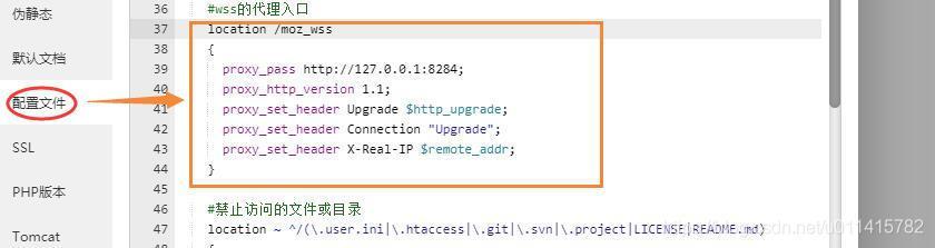 最后,便是在配置文件中,补充一个 wss 的代理入口 (鄙人定的入口为 "moz_wss")